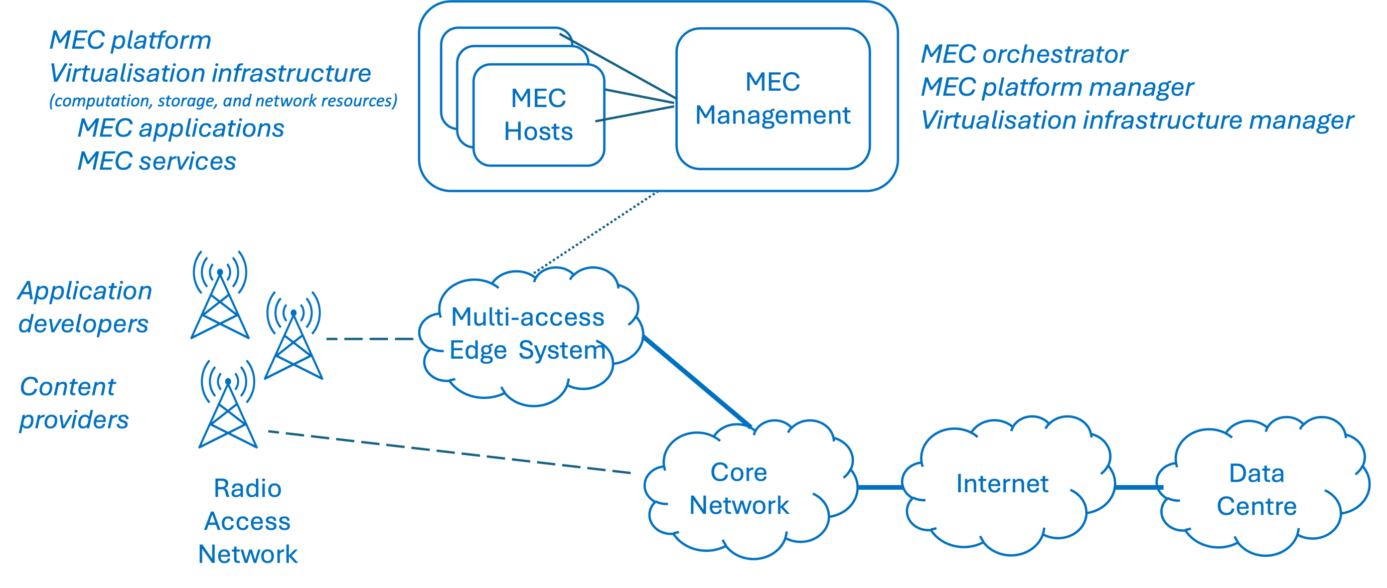 Multi-access edge computing (MEC), formerly referred to as mobile edge computing, is an ETSI-defined (European Telecommunications Standards Institute) network architecture concept that enables cloud computing capabilities and an IT service environment at the edge of a cellular network and more generally at the edge of any network, closer to end users, which significantly reduces latency and improves service delivery by processing data locally instead of sending it to a distant data centre. Essentially, it brings computing power closer to where data is generated, enabling faster response times for applications like augmented reality and real-time IoT data analysis.